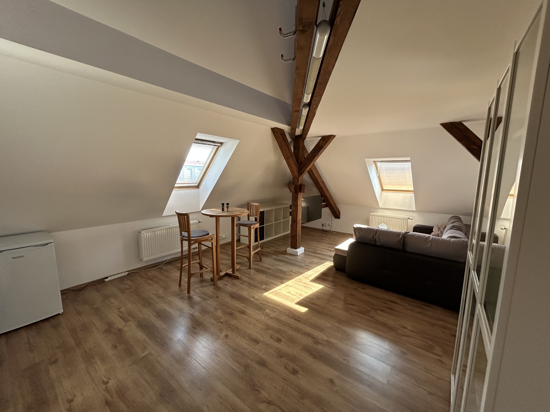 Světlý podkrovní apartmán s krásným výhledem.