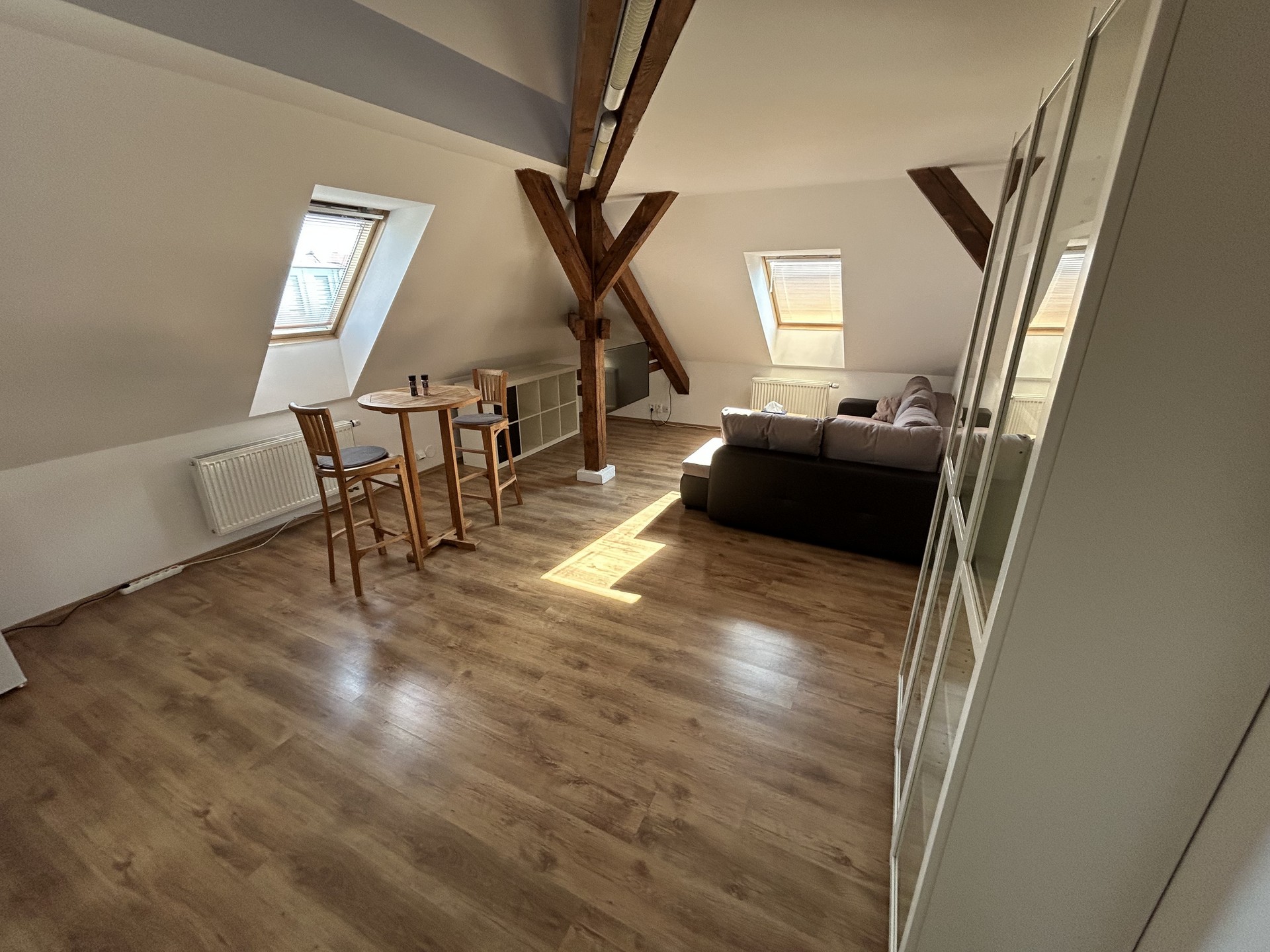 Světlý podkrovní apartmán s krásným výhledem.